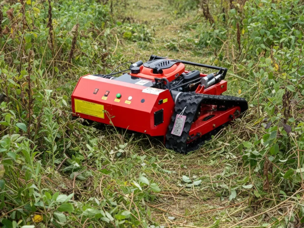 Косилка с дистанционным управлением в сцене очистки от сорняков