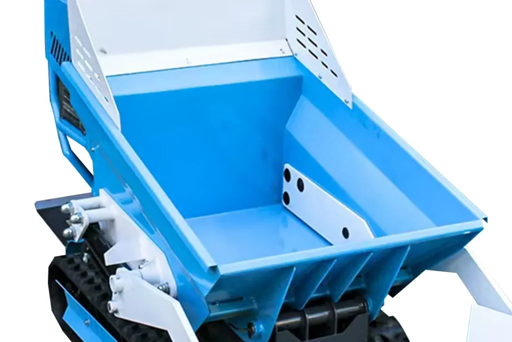小型履带式翻斗车,用于混凝土、土壤和碎石,易于移动和装载。